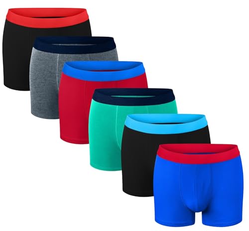 Bonjour® Boxershorts för pojkar (6 och 12-pack) bomullsdesigner baklucka boxershorts underkläder (5 år - 13 år), (6-pack blandad), 9-10 Years