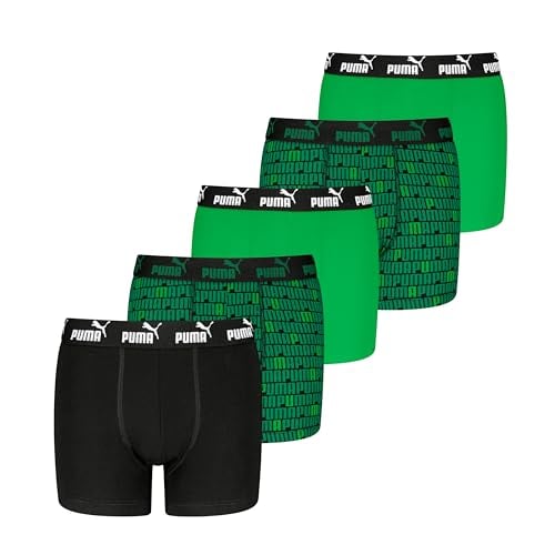 Puma Tryckta boxershorts för barn (5-pack), Svart/grön, 122-128