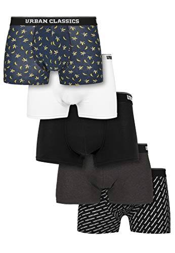 Urban Classics Boxershorts för män (5-pack), Bur/Dkblu+vit/Blk+wht+aop+blk, XXL