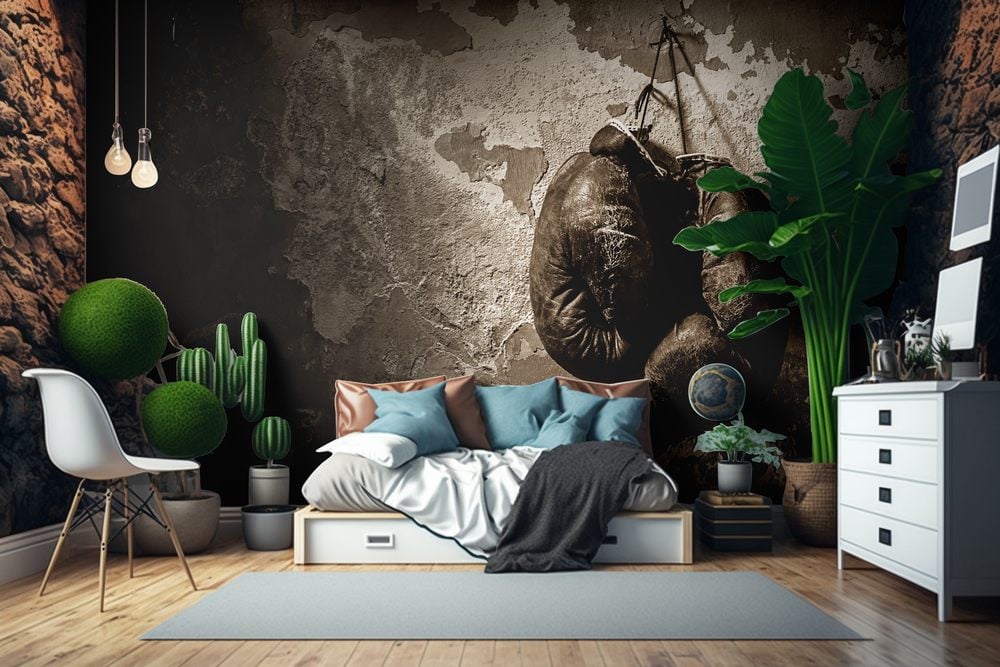 Fototapet -Gamla boxhandskar - Tonårsrum - Scandiwall - Boxning