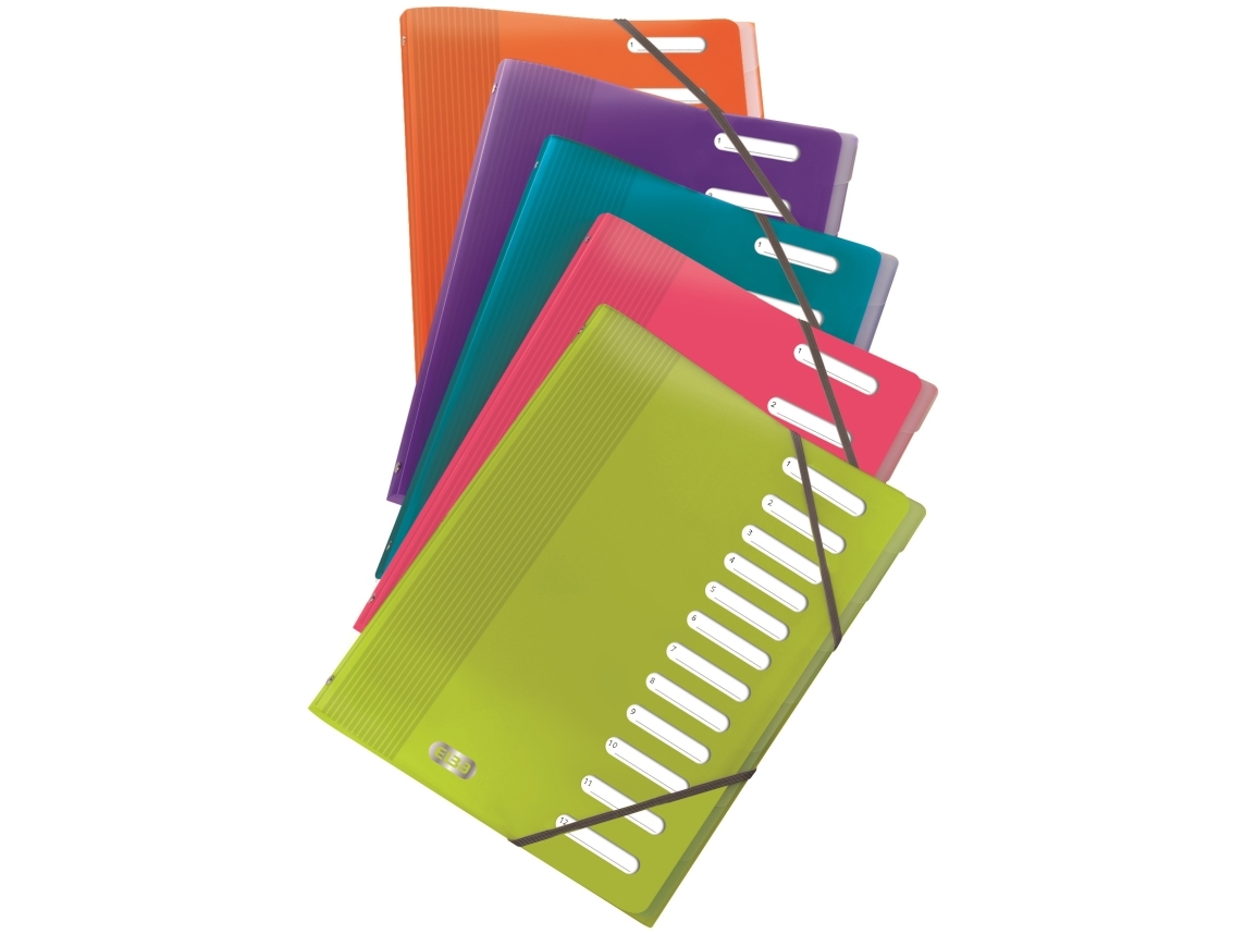 Elba 400006531, A4, Polypropylen (Pp), Blå, Grön, Orange, Rosa, Turkos, Poträtt, 12 Ark, Arkiveringslåda, Boxmapp