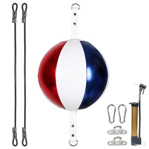 InnoLife Dubbelslutande boxningsboll slående boxningssäckssats, hastighetslående reflexkit med bungee-snören perfekt för reaktion, smidighet och träning för hand och öga, (blå och vit och röd)