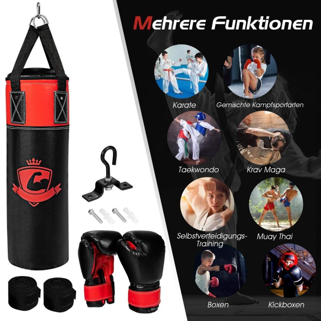 Boksäcksset med 8 oz boxningshandskar Handremmar Väska Boksäck för barn och vuxna Svart + Röd