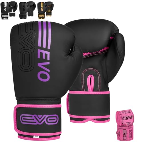 EVO Fitness Mattsvarta Boxningshandskar MMA Muay Thai Kampsport Kickboxning Sparring Träning Slåss Män Boksäck Kvinnor Rosa Handskar Med Handinslag (Rosa, 8 OZ)