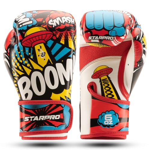 Starpro Boxningshandskar för barn | serietidningsbok-tema boxningshandskar för rolig och säker träning | Hållbara, bekväma, idealiska för nybörjare (babyblå, 113 ml)