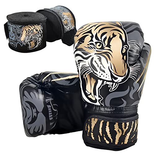 AQF Boxningshandskar Barn Vuxna, Kickboxningshandskar, Muay Thai Handskar Boxningssäck, Juniorboxningshandskar 4oz till 16oz för MMA Fighting Kickboxing Extra Lager av Stoppning Boxhandskar (10 oz, Guld)