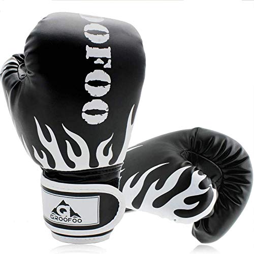 GROOFOO Boxningshandskar för barn, 177 ml sparring, boxningshandskar för boxningssäck, sparring, träning, ålder 3 till 14 år – svart