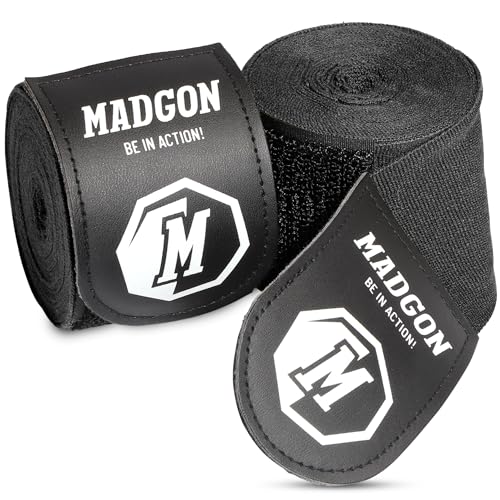 MADGON Handlindor för Boxning med Toppkvalitativt Kardborreband och Tumögla - 3m / 3,8m / 4,5m - Tåliga Boxningslindor - MMA, Boxning, Kickboxning, Sparring - Handledsstöd - Utmärkt Svettabsorbering