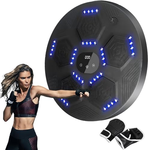 JUOIFIP Smart musik boxningsmaskin för vuxna och barn, Bluetooth-boxningsutrustning med boxningshandskar, väggmonterad elektronisk stansmaskin för hemmagym, träning inomhus