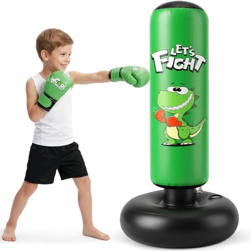 Esnowlee Boxningsväska för barn, uppblåsbar boxningssäck för barn, 120 cm - perfekt för karate, taekwondo, perfekt present till pojkar och flickor från 3 till 8 år (grön)