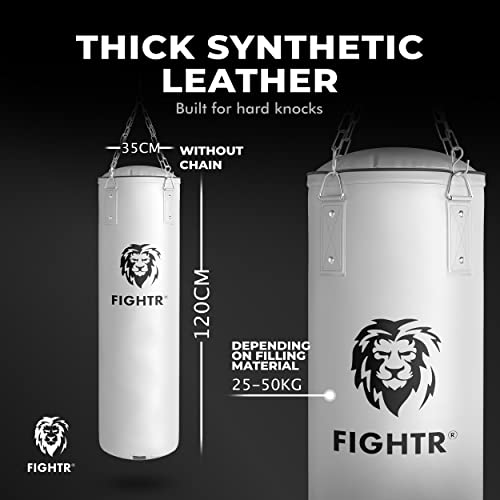 FIGHTR® Boxningssäck fylld/ofylld – extremt robust och hållbar | Boxningssäck set inkl. 4-punkts stålkedja 120 cm 30 kg för boxning, kickboxning, MMA, Muay Thai och andra kampsporter
