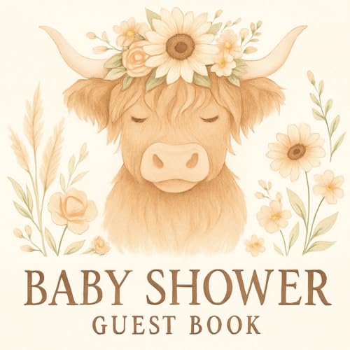 Highland Cow Baby Shower Guest Book: Memory Party Keepsake Highland Cow and Floral Themed Book Advice for Parents, Unique with Predictions, Family ... for Boy or Girl and 40 Sign In for Guests