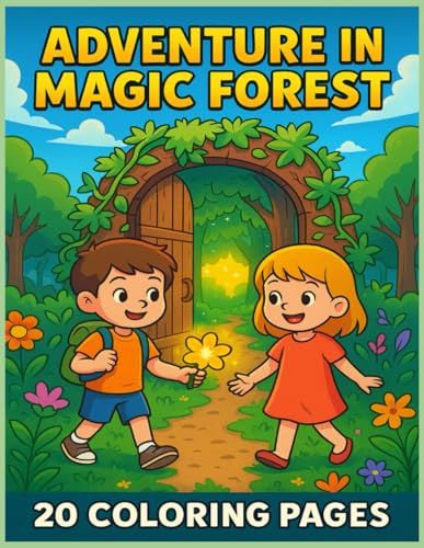 Adventure in the Magic Forest Coloring Book for Kids: Bold and Easy 20 Fun Pages of a Boy, a Girl, and Their Magical Jungle Adventure