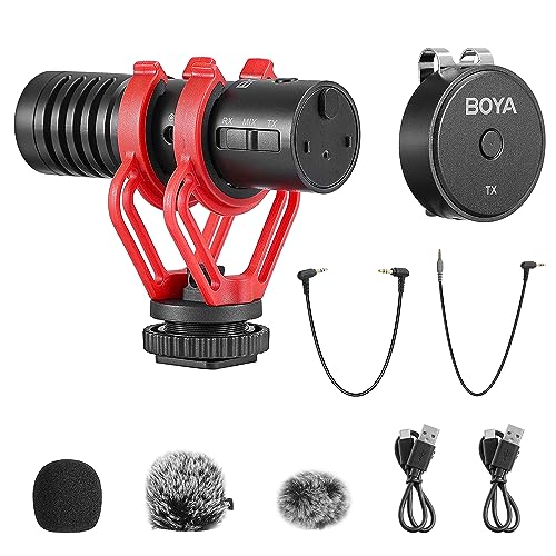BOYA BY-MM1W Kameramikrofon trådlös/trådbunden extern hagelgevär mikrofon med 3 polarmönster för DSLR/iPhone/telefon YouTube-inspelning intervju ström (1 TX+1 RX)