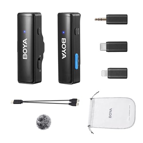 Boya BY-V3 Combo Trådlös Mikrofon för iPhone, Android, iPad, med USB-C/Lightning, Mini Trådlös Lavalier Mikrofon, Bullerreducering, 36Timme Energi för Videoinspelning, Strömma