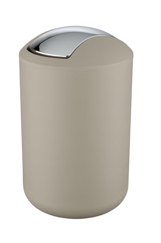 WENKO Brasil L kosmetikhink 6,5 liter kapacitet, dekorativ badrumskorg med svänglock, soptunna för gästtoaletten av okrossbar plast, BPA-fri, Ø 19,5 x 31 cm, brungrå