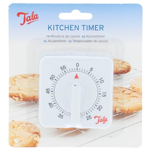 Tala Classic 1 timmes vit mekanisk timer, 60 minuters justerbar timer med hög ring, perfekt för dina matlagnings- och bakbehov, tillverkad med BPA-fri plast