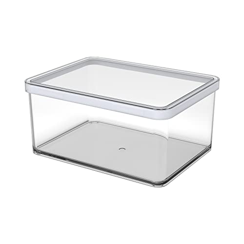 Rotho Loft Förvaringslåda med lock och tätning, BPA-fri plast (SAN), klar/vit, 3,2 L, 20,0 x 10,0 x 21,4 cm