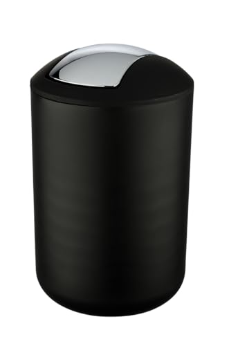 WENKO Brasil L kosmetikhink 6,5 liter kapacitet, dekorativ badrumskorg med svänglock, soptunna för gästtoaletten av okrossbar plast, BPA-fri, Ø 19,5 x 31 cm, svart