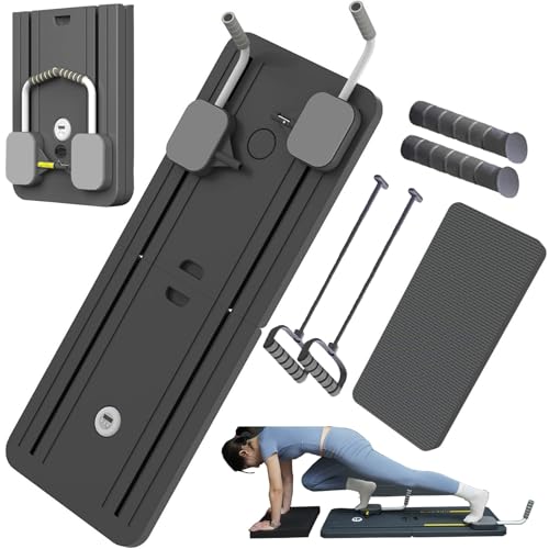 ExeractFit Pilates reformer-maskin, brädset, magrulle, övningshjul, automatisk återstudsning, vikbar pilatesbräda, magträningsutrustning med motståndsrep och timer(Svart med Grepp)