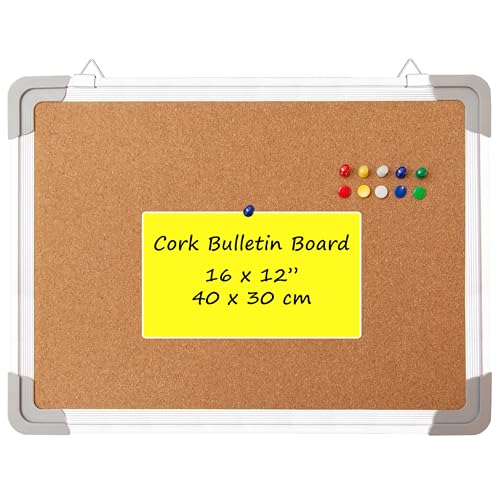 Kork brädset – anslagskorkbräda 40,6 x 30,48 cm inramad med 10 tummärken – liten vägg hängande meddelande memo pin tackboard organiserare för hem, kontor, skrivbord och kubik (kork 40,6 x 30,48 cm)
