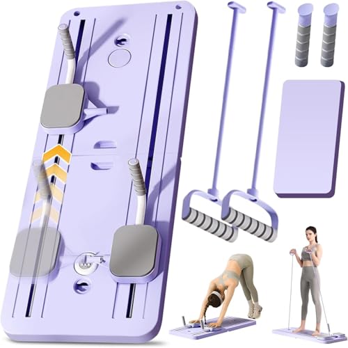 ExeractFit Pilates reformer-maskin, brädset, magrulle, övningshjul, automatisk återstudsning, vikbar pilatesbräda, magträningsutrustning med motståndsrep och timer(Lila utan Grepp)
