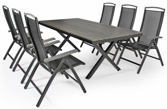 Brafab - Leone Matgrupp 200x100 cm ink 6st Andy Pos.stolar Svart/Grå