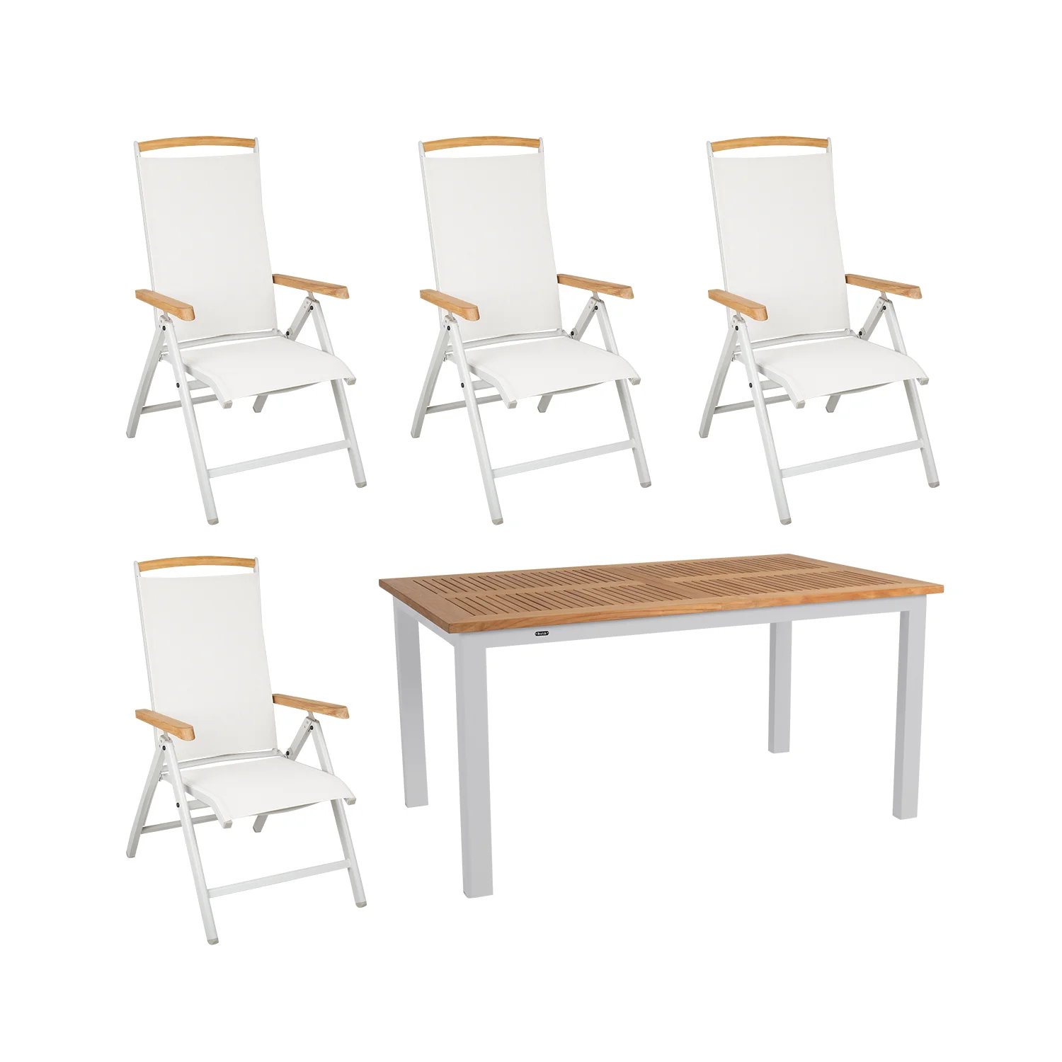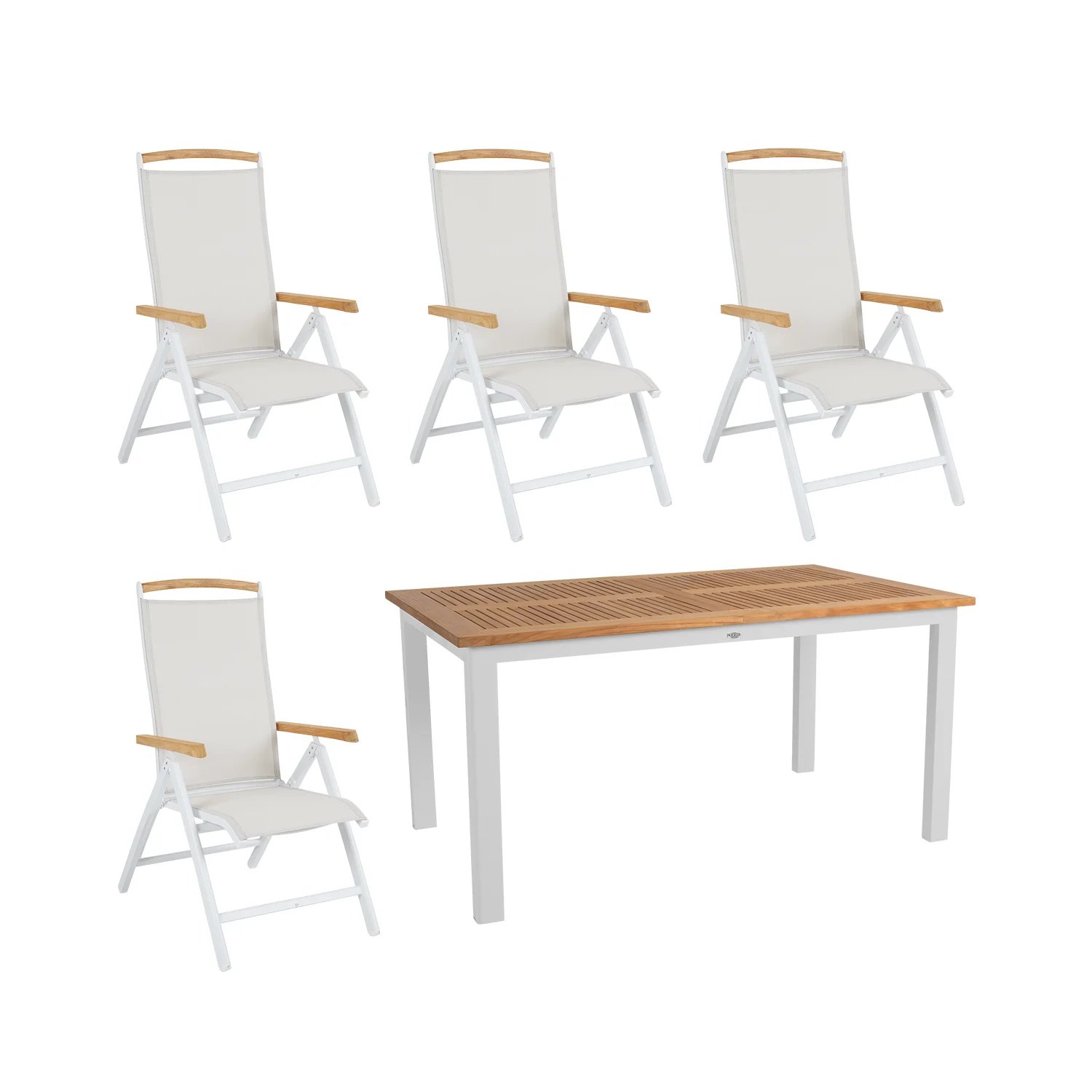 Andy/Lyon matgrupp vit/teak - 4 stolar - 152-210x90 cm