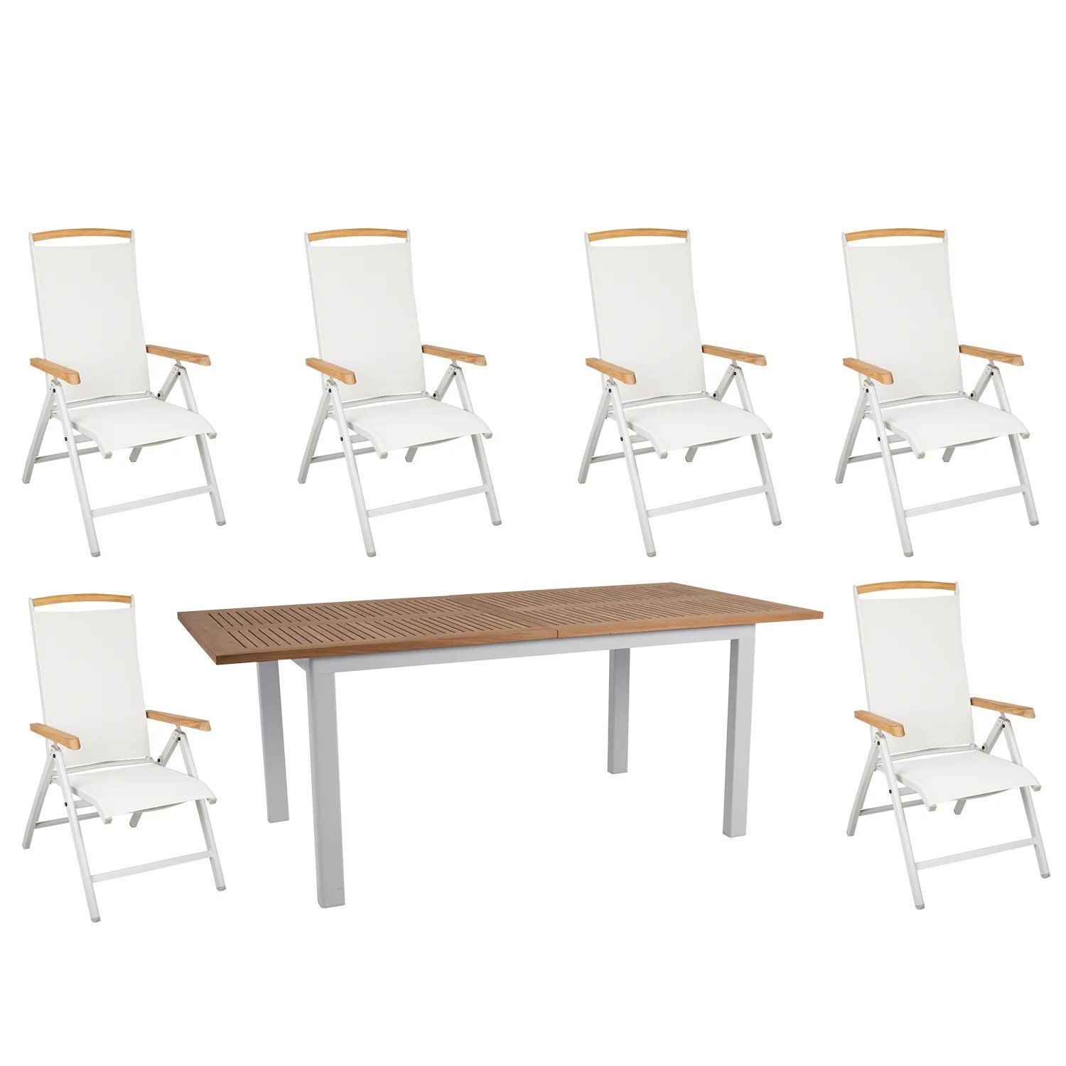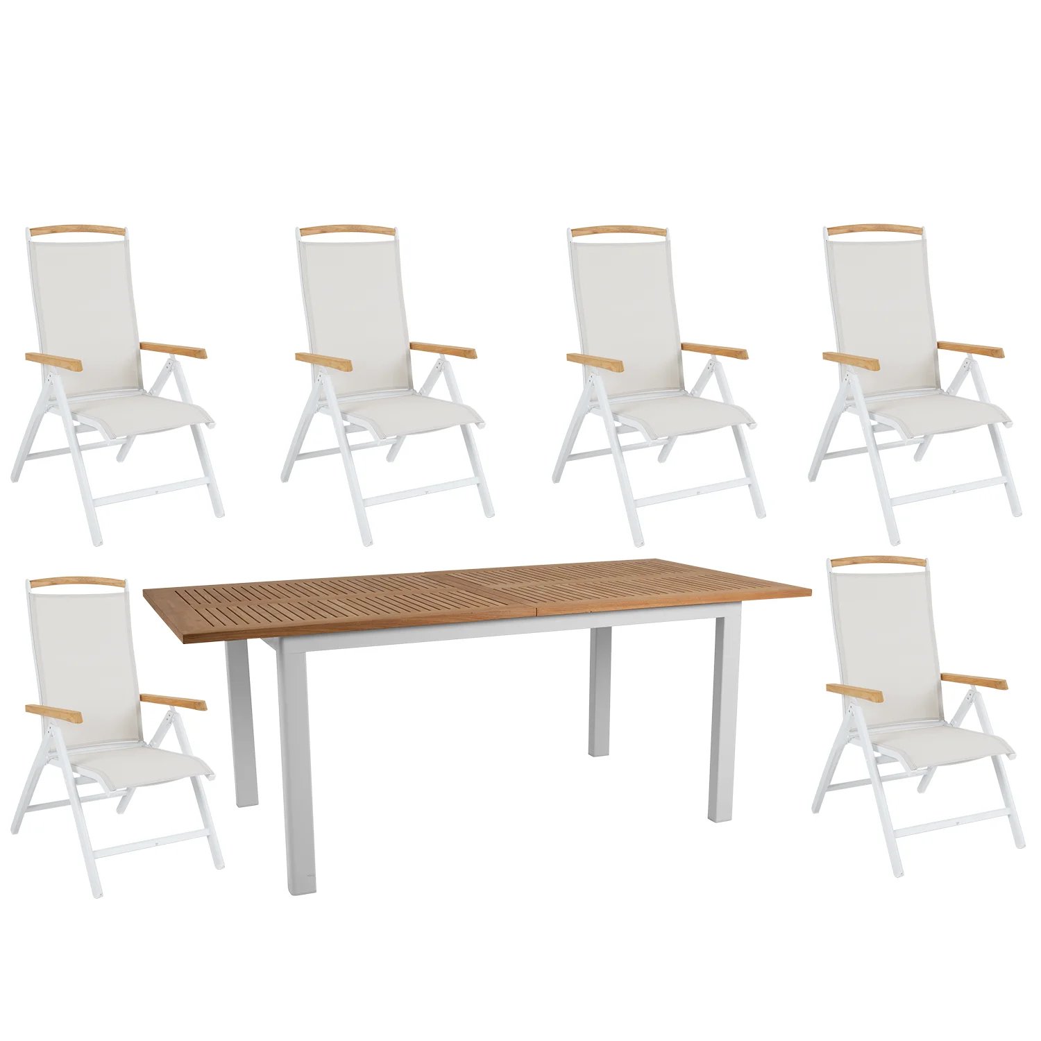 Andy/Lyon matgrupp vit/teak - 6 stolar - 194-252x90 cm