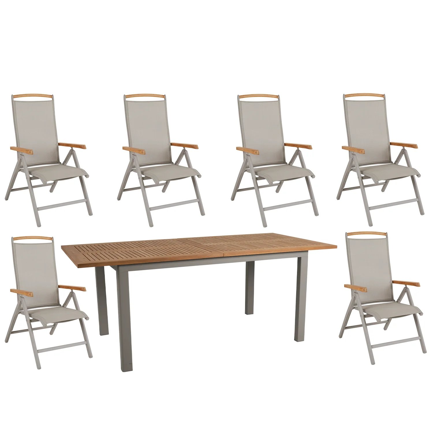 Andy/Lyon matgrupp ljusgrå/teak - 6 stolar - 194-252x90 cm