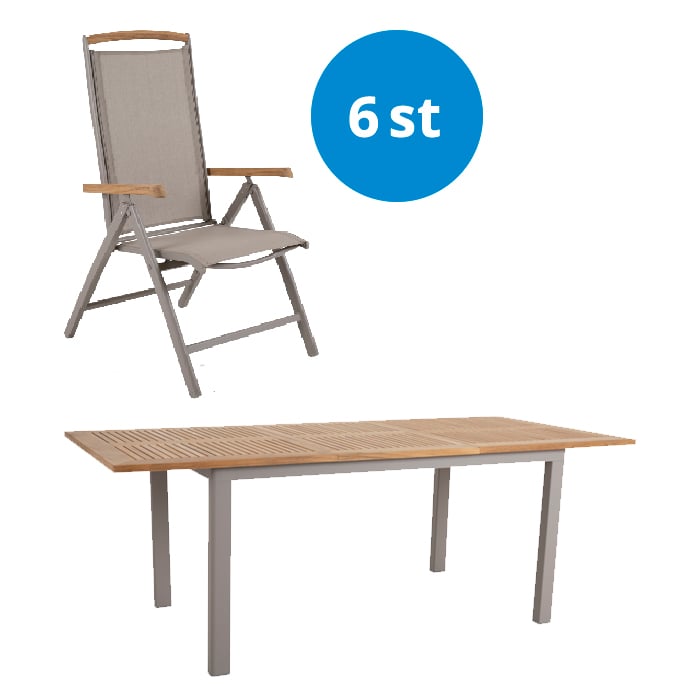 Andy/Lyon matgrupp khaki/teak - 6 stolar - 194-252x90 cm