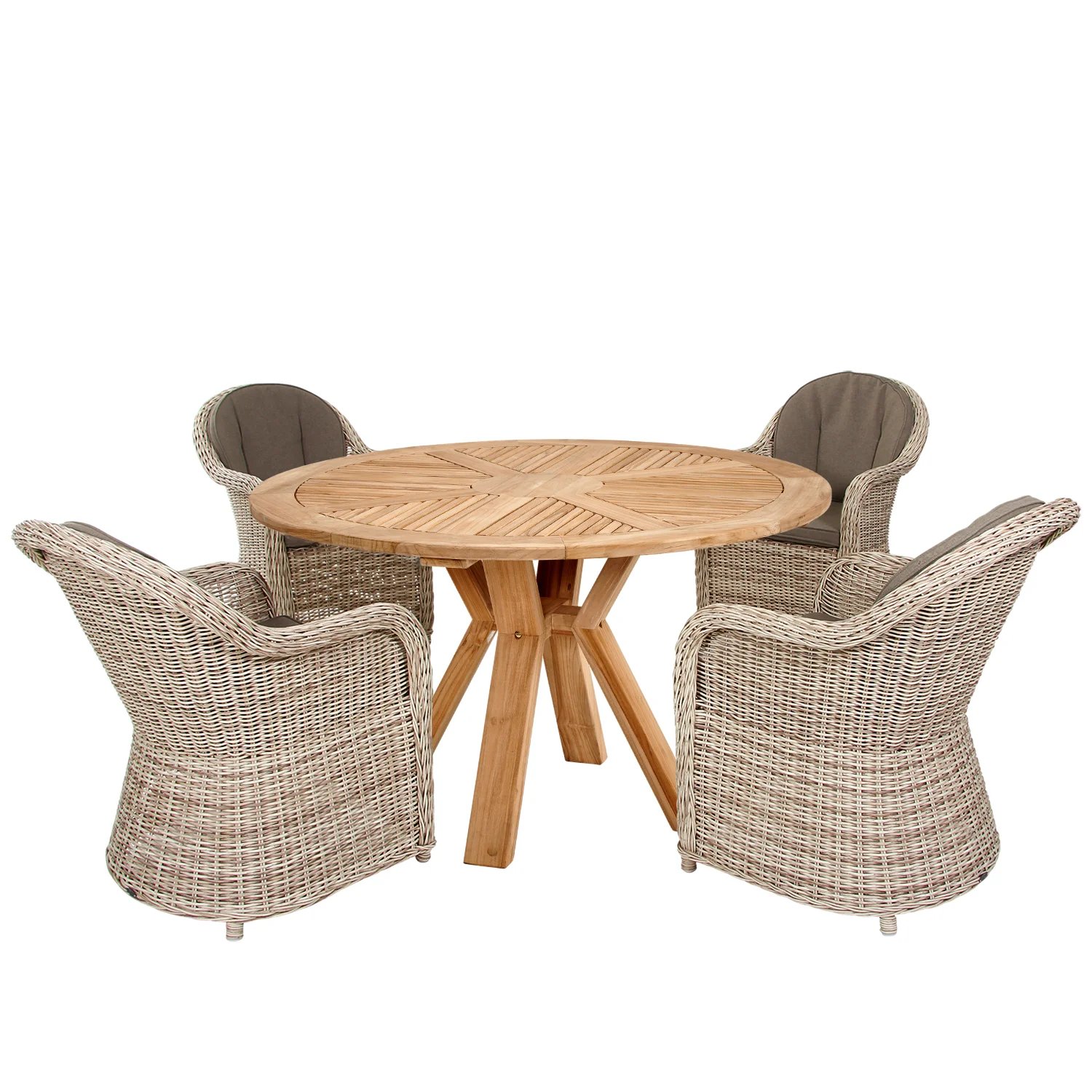 Paulina/Circus matgrupp beige - 4 stolar - Ø130 cm