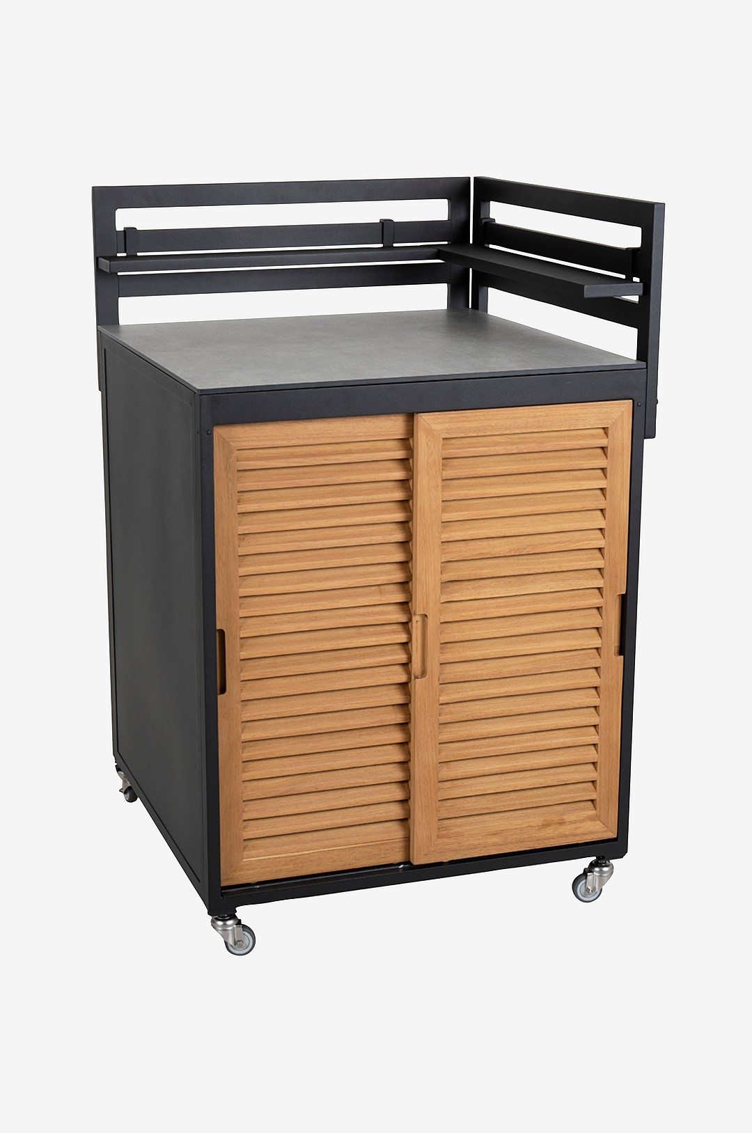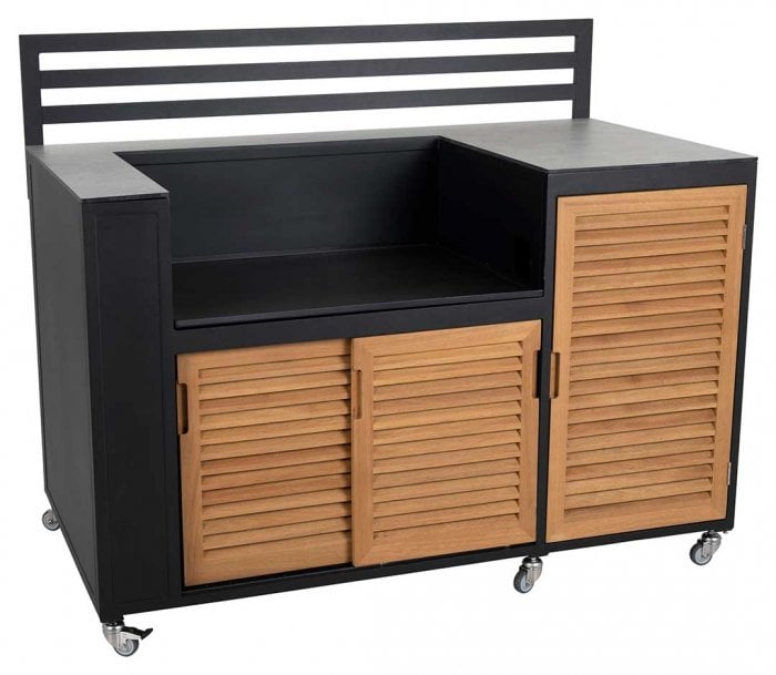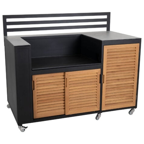 Brafab Fornax utekök köksdel aluminium och teak svart/natur