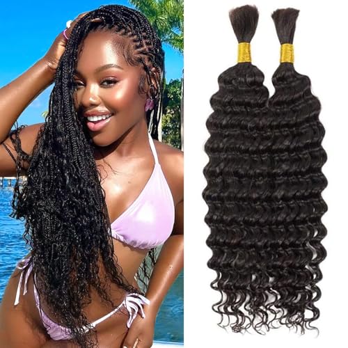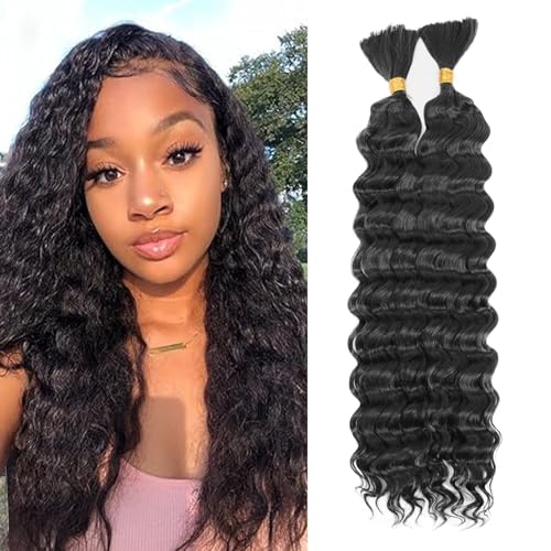 Huarisi Human Braiding Hair 2 Bundles 100g 20Inch Deep Wave Bulk Human Hair for Braiding No Weft Curly Braids Hair Bulk Deep Wave Human Hair for Boho Braids (natural color, 50gx2Bundles)