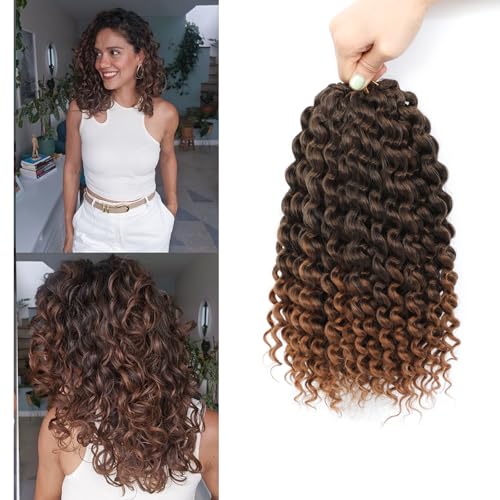 8 Packs GoGo Curl Crochet Hair 12 Inch Short Curly Crochet Hair for Women Beach Curl Water Wave Deep Twist Crochet Braids Synthetic Braiding Hair Extensions (T1B/30#, 12 Inch(pack of 8))