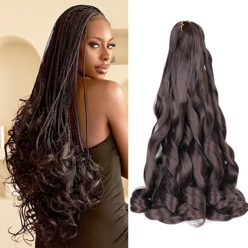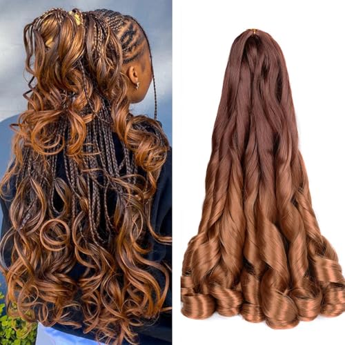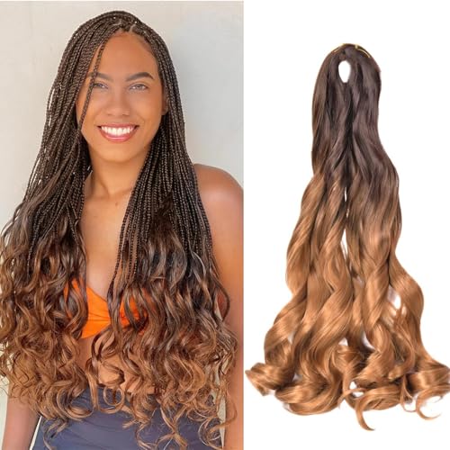Herkeymidy french curly braiding hair 24 inch Loose Wavy 8 Pack Bouncy Braiding Hair extensions 75g/Pack French Curly Synthetic Hair Extensions (24 tum( 8 förpackningar), 4#)