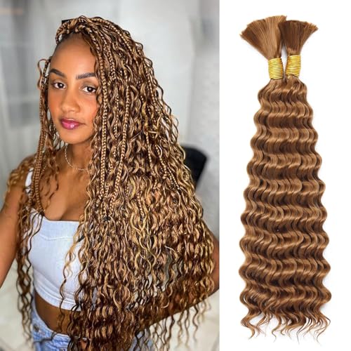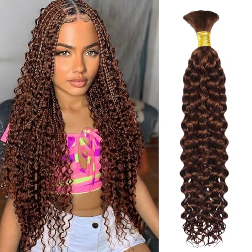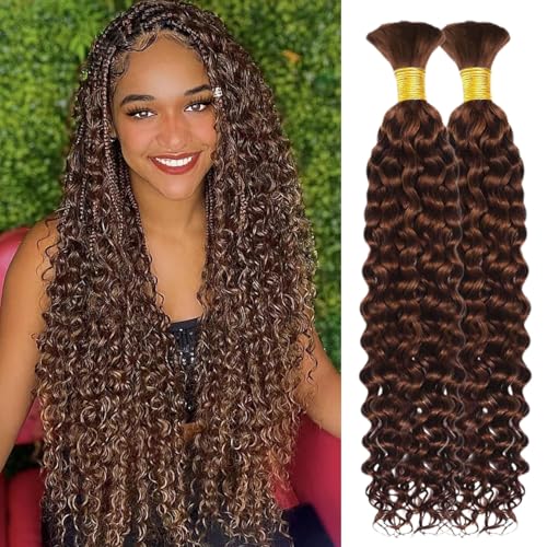 Human Braiding Hair 2 Bundle Water Wave Human Hair for Boho Braids Chocolate Brown Brazilian Virgin Curly Human Hair for Knotless Braids No Weft Boho Knotless Braids Bulk (20 inch/100g)
