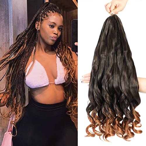Herkeymidy french curly braiding hair 24 inch Loose Wavy 8 Pack Bouncy Braiding Hair extensions 75g/Pack French Curly Synthetic Hair Extensions (24 tum( 8 förpackningar), T1B/30)