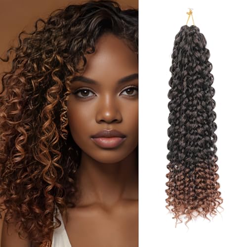8 Packs GoGo Curl Crochet Hair 18 Inch Long Curly Crochet Hair for Women Beach Curl Water Wave Deep Twist Crochet Braids Synthetic Braiding Hair Extensions (T1B/30#, 18 Inch(pack of 8))