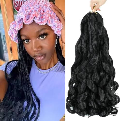 DT CHERYL French Curl Braiding Hair 8 st Loose Wavy Curl Braiding Hair for Black Women, 24 tum syntetiska lockiga försträckt flätat hår senegalesisk tvinnnad virkad hårlåda flätor (24tum, 1B#)