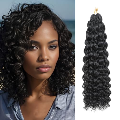 Herkeymidy Ocean Wave Crochet Hair 3 Packs 22 Inch Deep Wave Wavy Braiding Hair Crochet Synthetic Braids Hair Extension For Black Women (1B)