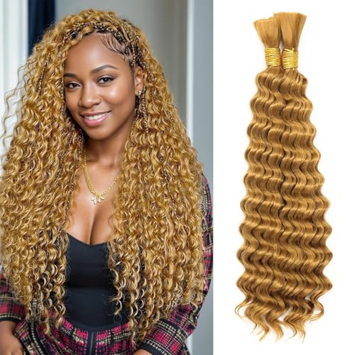 YYQXZG Deep Wave Bulk Hair for braiding 20 Inch No Weft Synthetic Curly Braiding Hair Extensions for Boho Braids (2bundles,120g,P4/27)