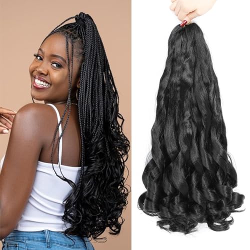 Herkeymidy french curly braiding hair 24 inch Loose Wavy 8 Pack Bouncy Braiding Hair extensions 75g/Pack French Curly Synthetic Hair Extensions (24 tum( 8 förpackningar), 1B)