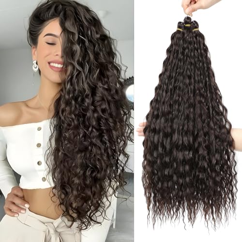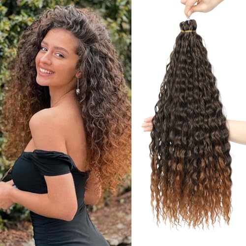 AMLUCKS Deep Wave Curly Crochet Hair Ocean Wave Braiding Hair för svarta kvinnor flickor syntetiska vattenvåg virkade hårförlängningar för bohoflätor (4#, 50 cm – 6)