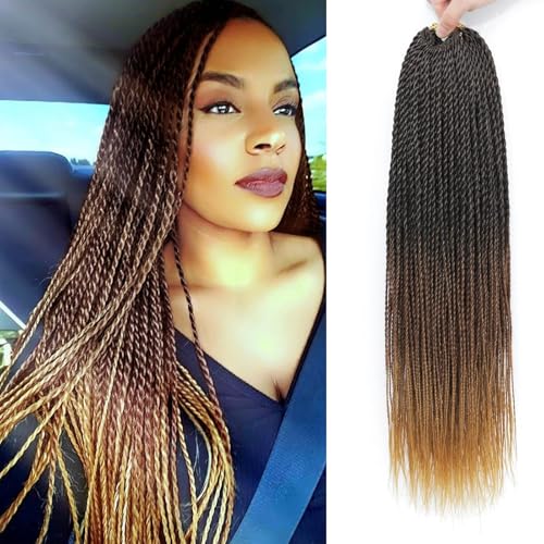 Senegalese Twist Crochet Hair - 8 Packs Crochet Hair For Black Women, 30 Strands/Pack Small Twist Crochet Braids Hair Hot Water Setting, Crochet Braiding Hair with Natural Ends (22inch, 1B/30/27)