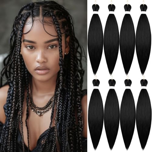 ACUTEBAO Pre-stretched Braiding Hair Professional Easy Crochet Braid Hair 26 Inch 8-pack varmt vatteninställning mjuk syntetisk hårförlängning för twist senegalesiskt virkigt hår (26 tum, 1B)