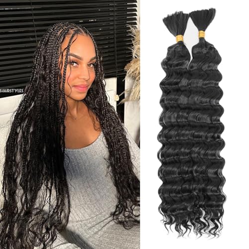 YYQXZG Deep Wave Bulk Hair for braiding 20 Inch No Weft Synthetic Curly Braiding Hair Extensions for Boho Braids (2bundles,120g,1B)