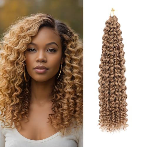 8 Packs GoGo Curl Crochet Hair 18 Inch Long Curly Crochet Hair for Women Beach Curl Water Wave Deep Twist Crochet Braids Synthetic Braiding Hair Extensions (27#, 12 Inch(pack of 8))