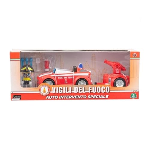 Giochi Preziosi Brandmän - brandbil med original frihjulsliv, släpvagn och brandman 7 cm med utrustningstillbehör, för barn från 4 år