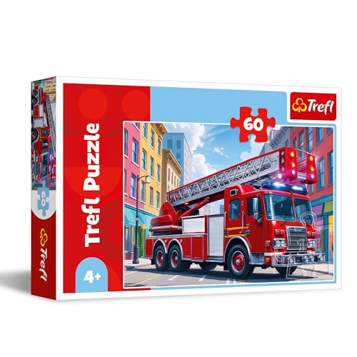 Trefl - Brandbil - Pussel 60 bitar - Färgglatt pussel med fordon, Kreativ underhållning, Lek för barn från 4 år